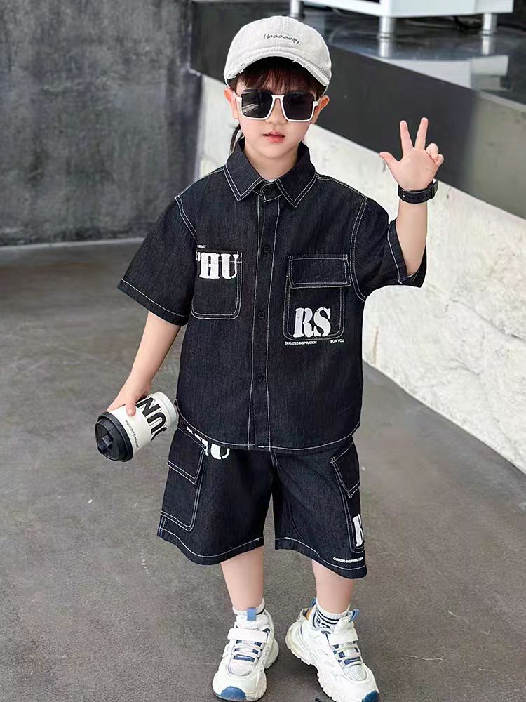 THU denim shorts/shirt black set